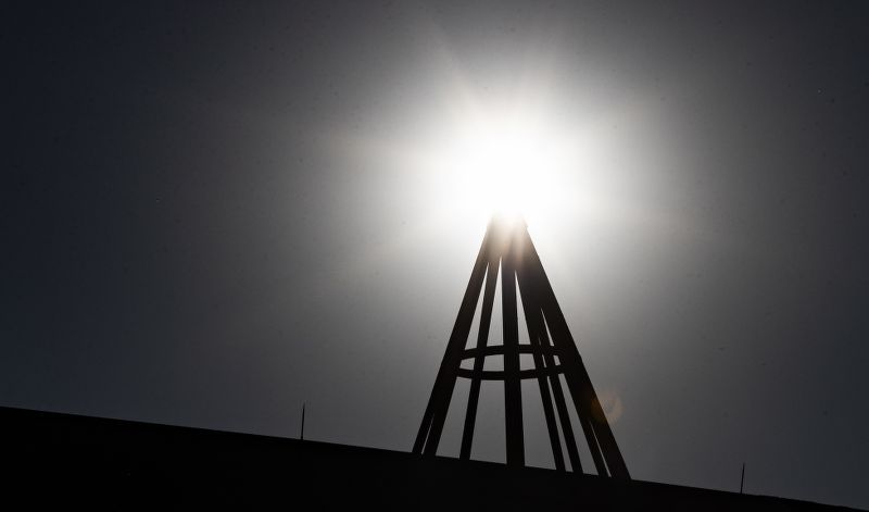 The museum’s iconic Skydome building, with its distinctive yellow color and red spire, was designed to resemble a futuristic frustum.