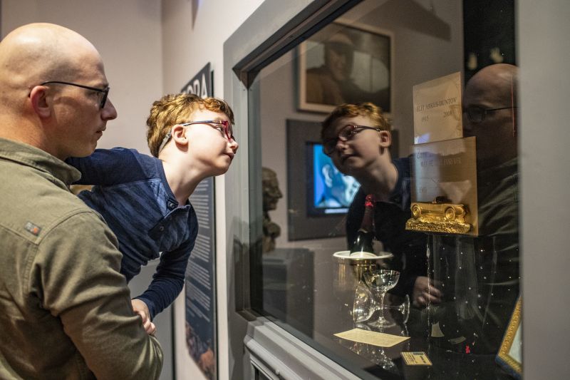 The entire museum is wheelchair and stroller accessible, with smooth surfaces and wide pathways throughout the exhibits. All public areas, including restrooms and the gift shop, are designed to accommodate these devices. Standard-size wheelchairs and strollers are available for visitors to use at no cost. You can pick them up at the admissions counter on a first-come, first-served basis.