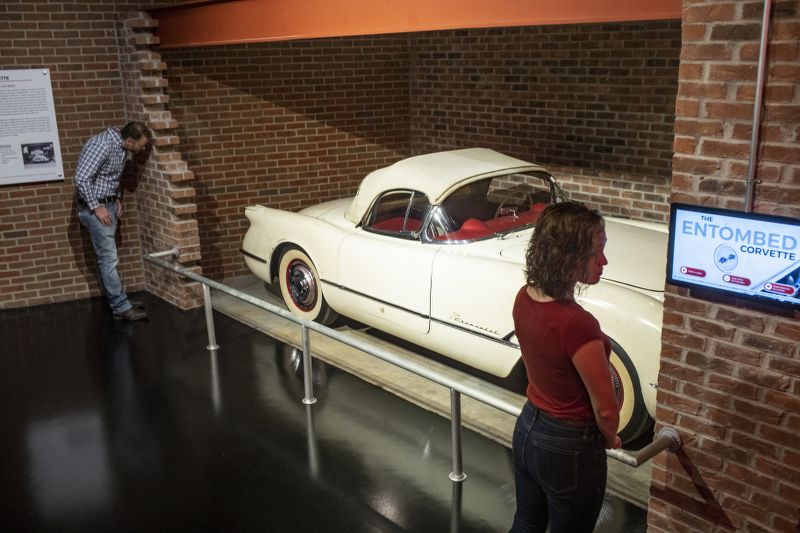 Discover the unique Corvette Cave In exhibit showcasing the effects of a sinkhole event.