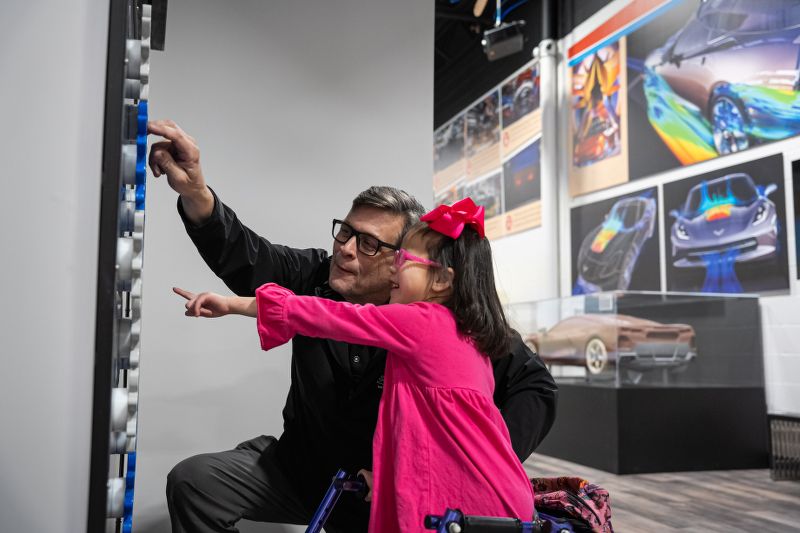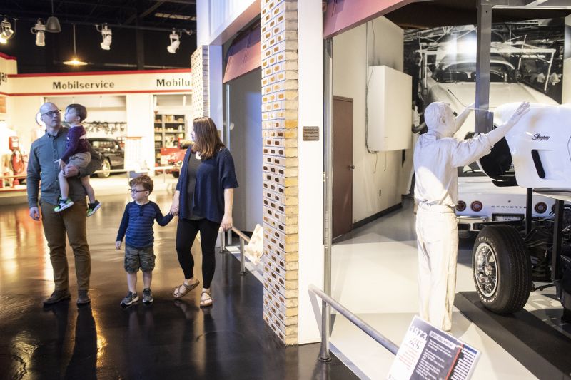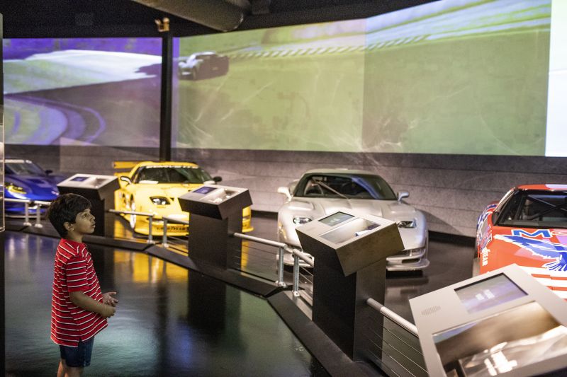 Visitors can pay a small fee to experience the high-speed thrill of the Corvette racing simulator, which is available to all ages as long as they can reach the pedals.